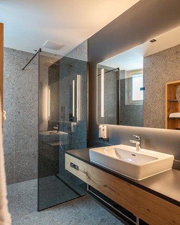 - Hochwertige Pflegeprodukte im Badezimmer